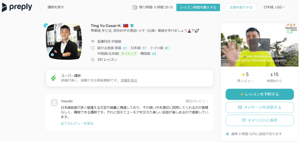 それに、台湾、中国、香港からのテレビ番組/音楽チャンネルをおすすめして一緒に議論することもできますよ。興味づけるトピックから習うなら、言語レベルを向上し、目標達成を促す最良の方法であると考えております。私たちがあなたの言語目標の計画を立てることができるように、私はあなたとの最初のトライアルレッスンをしたいです。